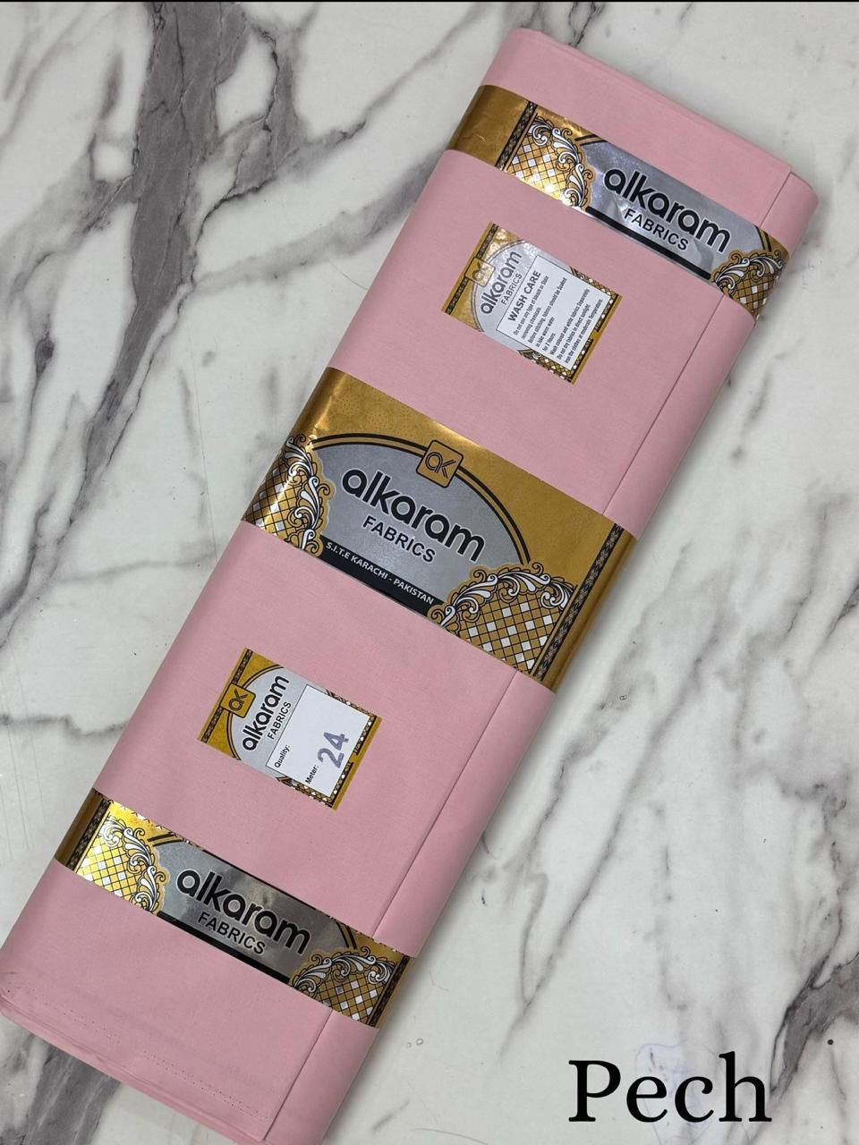 Description: Reflect pure grace with Al Karam cotton fabric- a premium class pure cotton blend made of 100% breathable fabric. It gives off a slightly silky textured finish to make you look elegantly sophisticated as you get it styled for the summer season.